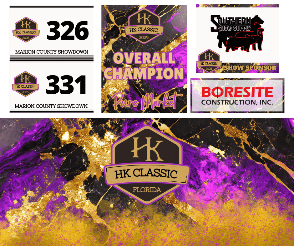 A small collection of past designs created for livestock shows, exhibitors and families.