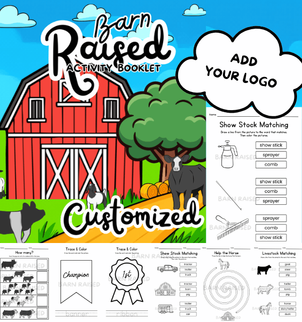 Introducing the Barn Raised Activity Booklet – Custom Edition—a fun, easy way to keep kids entertained at your stock show while promoting your brand. Designed for 8.5x11 printing and folding, it includes 18 livestock-themed activities like coloring, tracing, counting and more. Add your logo for a personalized giveaway perfect for events or show day fun.